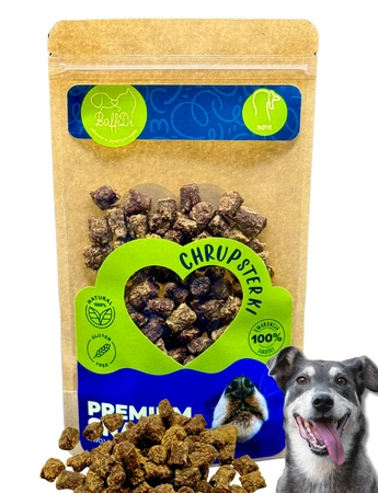 Zadbaj o skuteczny i przyjemny trening swojego psa z ChrupSterkami z indykiem od BaffiDi. To w 100% naturalne, aromatyczne przysmaki w formie małych kosteczek, lekkostrawne, niskokaloryczne i pełne wartości odżywczych – idealne do nagradzania podczas treningów, spacerów i codziennych aktywności.