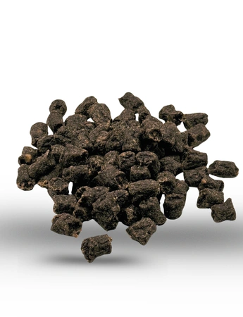- Analiza składu: białko – 42,4%, tłuszcz – 15,5%, włókno surowe – 6,5%, popiół – 11,6%, wilgotność – 10,5%