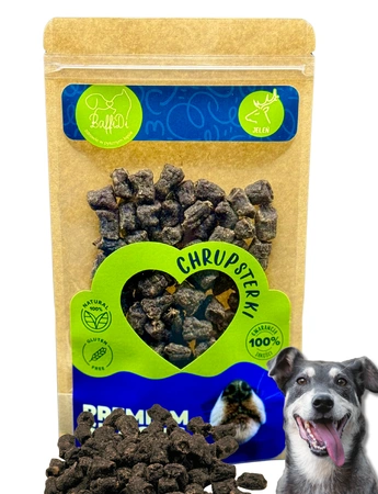 Szukasz wyjątkowej nagrody dla swojego pupila? ChrupSterki z jelenia od BaffiDi to w 100% naturalne, aromatyczne smakołyki w formie małych kosteczek, które Twój pies pokocha od pierwszego chrupnięcia. Lekkostrawne, niskotłuszczowe i pełne wartości odżywczych – idealne do treningów, spacerów i codziennego nagradzania.