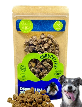Zadbaj o skuteczny i przyjemny trening swojego psa z ChrupSterkami z kaczką od BaffiDi. To w 100% naturalne, aromatyczne przysmaki w formie małych kosteczek, idealnych do nagradzania podczas spacerów, treningów i codziennych aktywności.