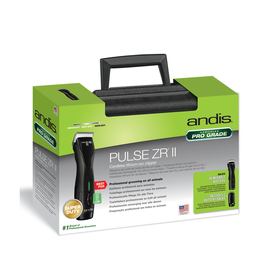 Model ten jest bardzo lekki, a ergonomiczny i antypoślizgowy uchwyt zapewnia wysoki komfort pracy przez cały dzień. Diody Led sygnalizują poziom prędkości. Andis Pulse ZR II kompatybilna jest ze wszystkimi ostrzami typu Clip-On dostępnymi na rynku, pakowana w zestawie wraz z ostrzem ceramicznym nr 10 (1,5 mm), walizką i akcesoriami. Polecana do salonów pielęgnacji zwierząt, lecznic weterynaryjnych i hodowli.