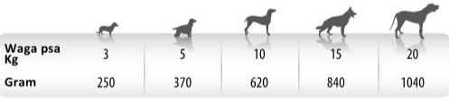 - Skład: Mięso i produkty pochodne (świeże mięso; indyk 26% i wątróbka wieprzowa 5%), warzywa (marchew, groszek i ziemniaki 6%), zboża, oleje i tłuszcze, substancje mineralne, białko mleka w proszku.