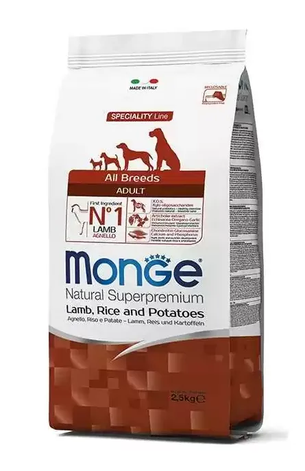 Pełnowartościowa karma Superpremium Adult Jagnięcina z ryżem i ziemniakami dla psa 2,5kg - marki MONGE