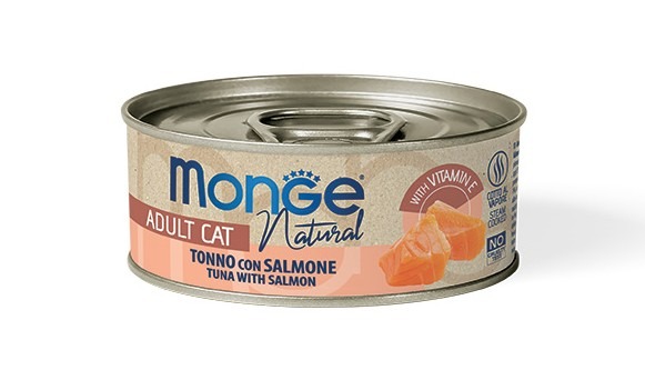 Puszka dla kota NATURAL Tuńczyk z kurczakiem i Łososiem 80g - marki MONGE