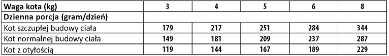 Dzienne zapotrzebowanie dla dorosłego kota średniej wielkości wynosi około 2½ saszetki. Indywidualne potrzeby mogą się różnić w zależności od wieku, środowiska oraz poziomu aktywności kota. Produkt należy podawać w temperaturze pokojowej. Nieużywaną porcję przechowywać w lodówce i zużyć w ciągu 2 dni.