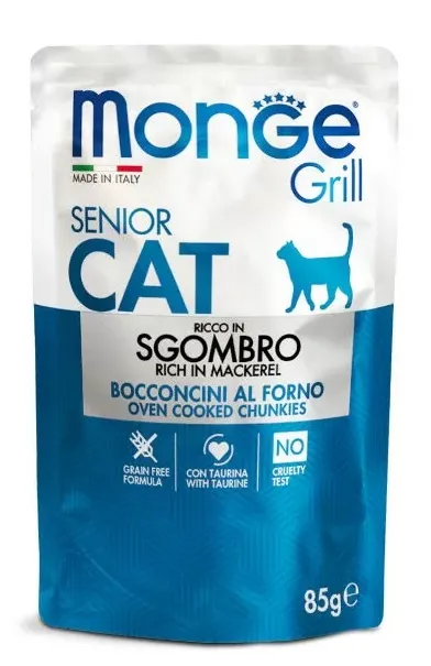 Saszetka dla kota SENIOR mięsne kawałki z Makreli 85g GRILL- marki MONGE
