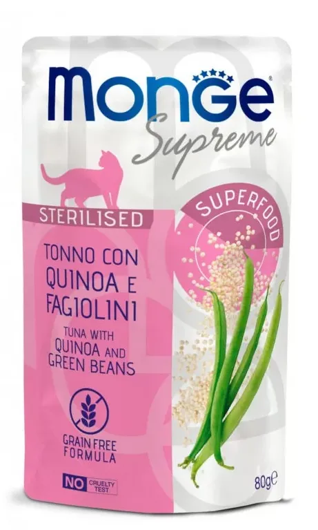 Saszetka dla kota Supreme Sterilised Tuńczyk z komosą ryżową i zieloną fasolką 80g - marki MONGE