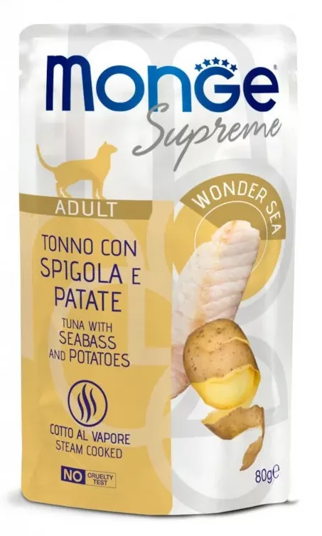 Saszetka dla kota Supreme Tuńczyk z okoniem morskim i ziemniakami 80g - marki MONGE