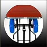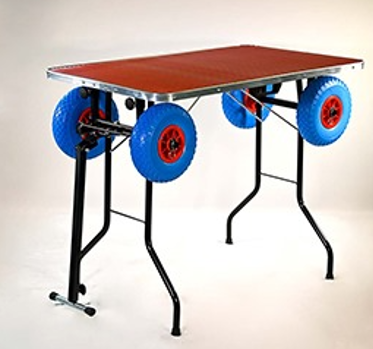 Stół posiada cztery pełnowymiarowe, gumowe koła z piankowym wypełnieniem, które są umieszczone na solidnym stalowym mocowaniu w kształcie kołków. Koła można bardzo łatwo zdjąć, dzięki czemu doskonale sprawdzi się na pokazach - wystarczy pociągnąć za wystające haczyki. Koła przednie - przymocowane bezpośrednio do dyszla - są skrętne, natomiast tylne koła mocowane są na sztywno.