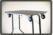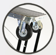 Stół posiada 2 pary gumowych kółek o średnicy 125 mm. Tylne są zamontowane na stałe, natomiast przednie są obrotowe, dzięki czemu ułatwiają transport stołu.