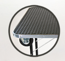 Za wytrzymałość odpowiada solidna bukowa podłoga, dla bezpieczeństwa powleczona 3 mm warstwą antypoślizgowej gumy. Razem podłoga ma grubość 15 mm. Aby było jeszcze bezpieczniej - rogi stołu są zaokrąglone a krawędzie wykończone aluminiowym profilem.