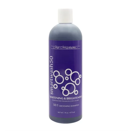 Chris Christensen Smart Wash 50 Whitening & Brightening to wyjątkowo skuteczny, a zarazem delikatny szampon opracowany specjalnie z myślą o poprawie wyglądu sierści u psów. Jego formuła została zaprojektowana tak, aby głęboko oczyszczać i jednocześnie rozjaśniać sierść bez ryzyka podrażnień, nawet przy częstym stosowaniu.