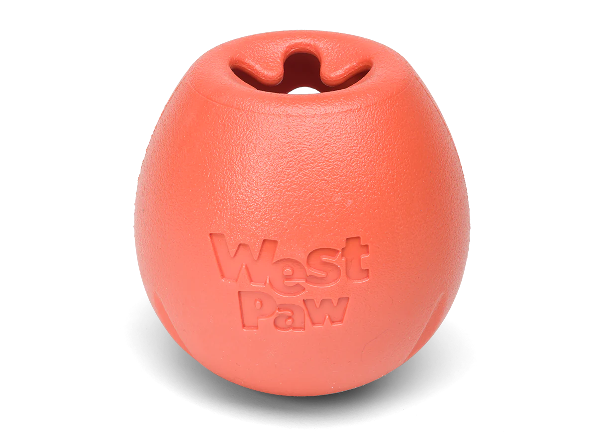 West Paw Rumbl Treat Toy to interaktywna zabawka dla psów, która łączy w sobie funkcje dyspensera smakołyków oraz miski spowalniającej jedzenie. Jej unikalna, sprężysta konstrukcja z materiału Zogoflex sprawia, że zabawka jest bezpieczna, trwała i przyjemna w użytkowaniu dla psów o umiarkowanej sile gryzienia. Dzięki specjalnemu otworowi w kształcie „rybiej pułapki”, Rumbl umożliwia łatwe napełnianie suchymi smakołykami lub karmą, jednocześnie utrudniając ich wydobycie, co stymuluje psa do aktywnej zabawy i wspiera jego rozwój umysłowy.