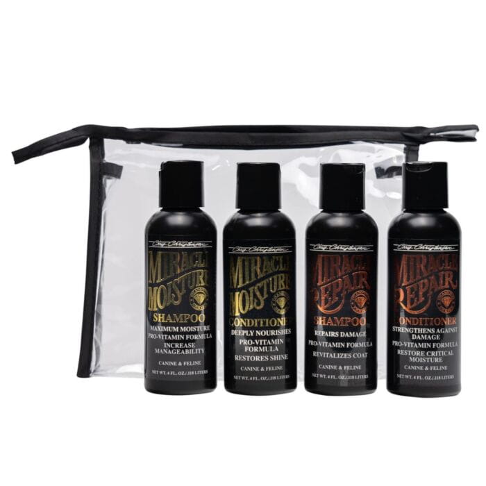 Chcesz, aby sierść Twojego pupila była zdrowa, lśniąca i łatwa w pielęgnacji? Postaw na profesjonalny zestaw Chris Christensen Diamond Series Try Me – kolekcję wysokiej jakości szamponów i odżywek stworzonych z myślą o regeneracji i ochronie zarówno psów, jak i kotów.